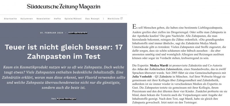 Dr. Medya Mardi ist Co-Autorin des „Atlas der Ästhetischen Zahnmedizin“, ein Standardwerk, das weltweit in 12 Sprachen übersetzt wurde. Seit 2007 leitet sie eine zahnärztliche Gemeinschaftspraxis in München.